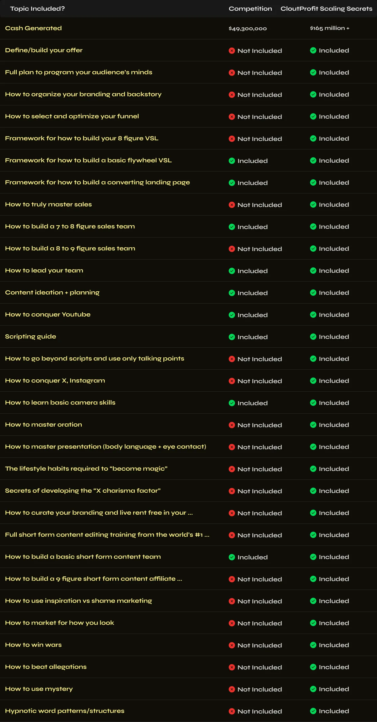 Nothing is held back inside of CLOUTPROFIT SCALING SECRETS. No secret sauce left to unlock. If it’s worked for us countless times, it’s going to work for you.
